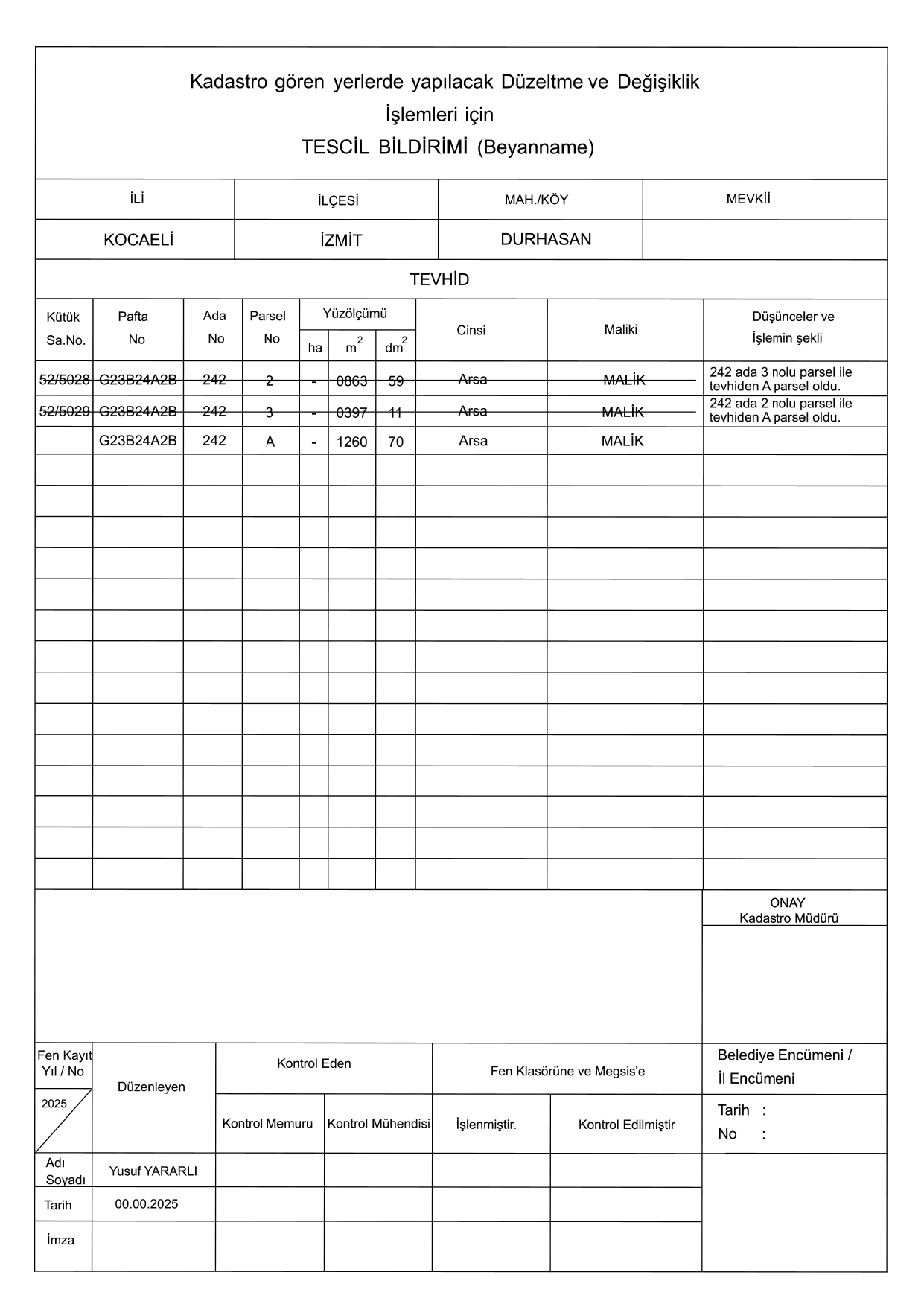 Komşu iki parselin birleştirilmesi için yapılması gereken işlemleri kapsar.
